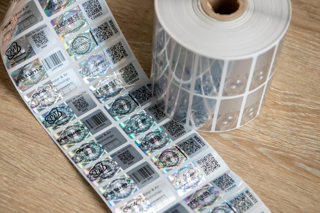 Nuestras etiquetas cuentan con un diseño holográfico exclusivo desarrollado por Holographic, sobre el cual se puede imprimir información personalizada según las necesidades del cliente. Esta información puede incluir logotipos, textos, códigos de barras y numeración secuencial.