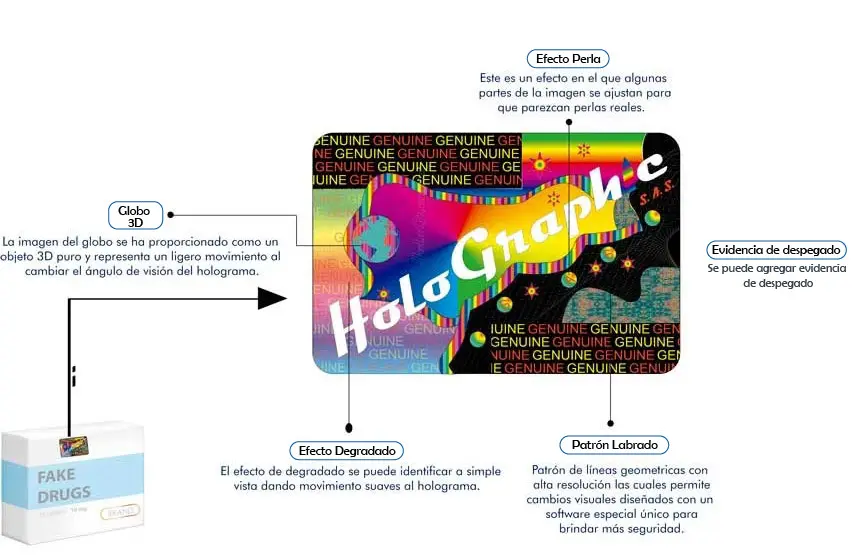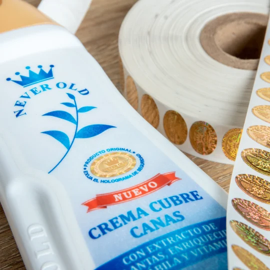 Etiquetas con un diseño holográfico exclusivo de propiedad del cliente, son utilizados en diferentes industrias y productos, ya que se enfocan en el bienestar del consumidor y su interés por recibir un producto genuino, de calidad y sin adulteración.